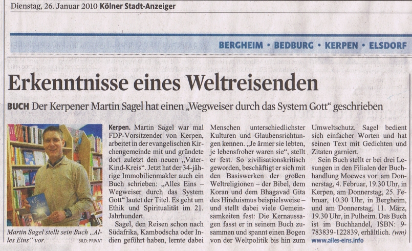 Kölner Stadtanzeiger vom 26. Januar 2010